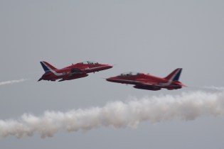 Two Red Arrows perform one of their trademark ‘near miss’ manoeuvres.
