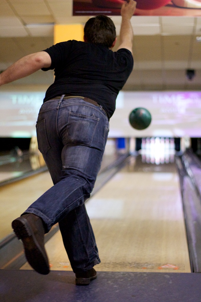 My brother-in-law emulates the rather poor technique being displayed by my wife and her sister whilst out bowling. It was in protest to the fact that they were winning, despite evidently not knowing anything about how to throw a bowling ball.