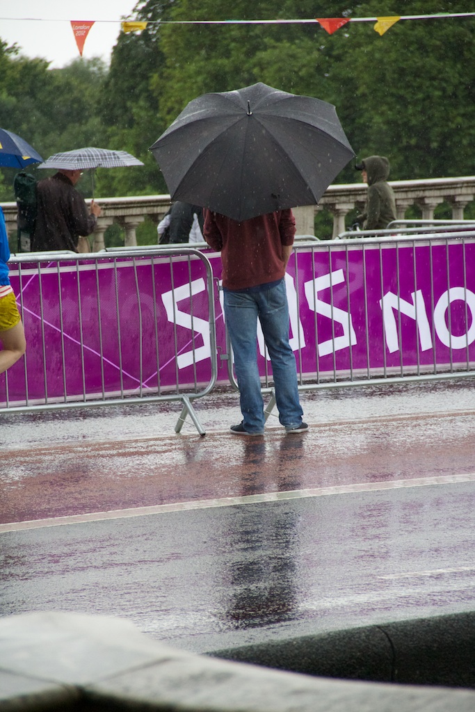 It’s been a bit of a washout winter so far here in the UK. I don’t know why we’re surprised, this is a shot from the middle of the London Olympics this year as a man stands in driving rain just to see a few stragglers on a bicycle.