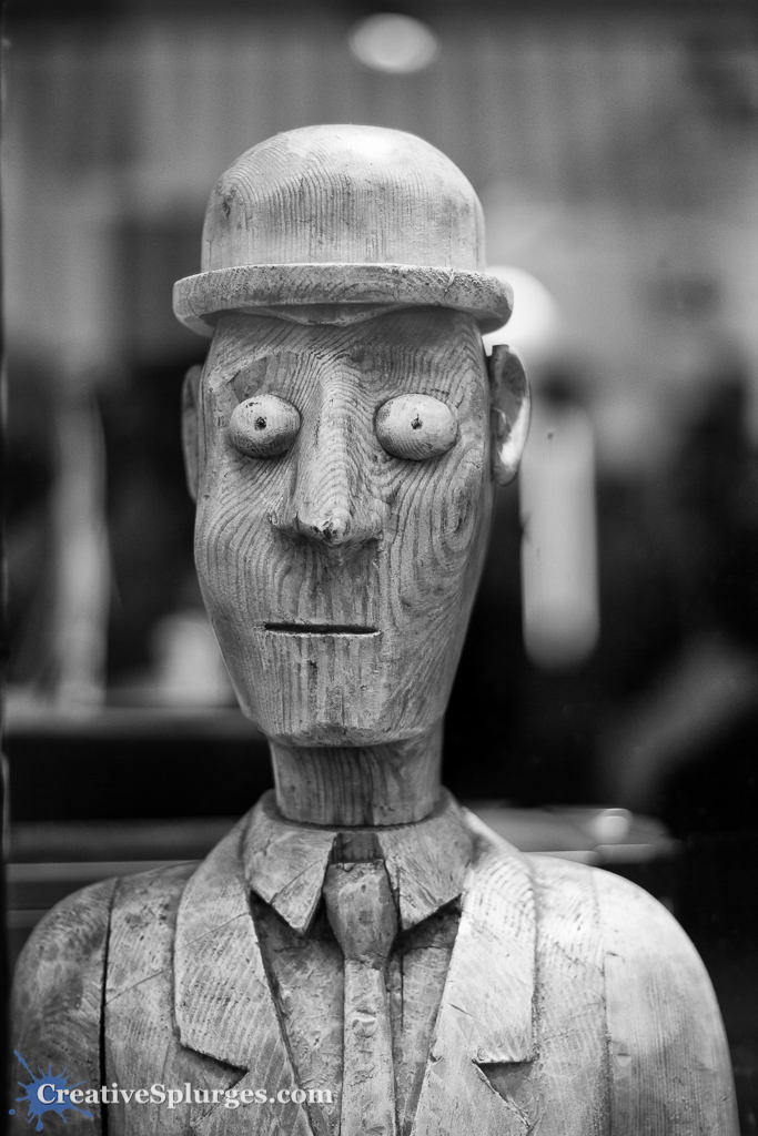 This wooden guy can be found in the window of a coffee shop near Covent Garden.