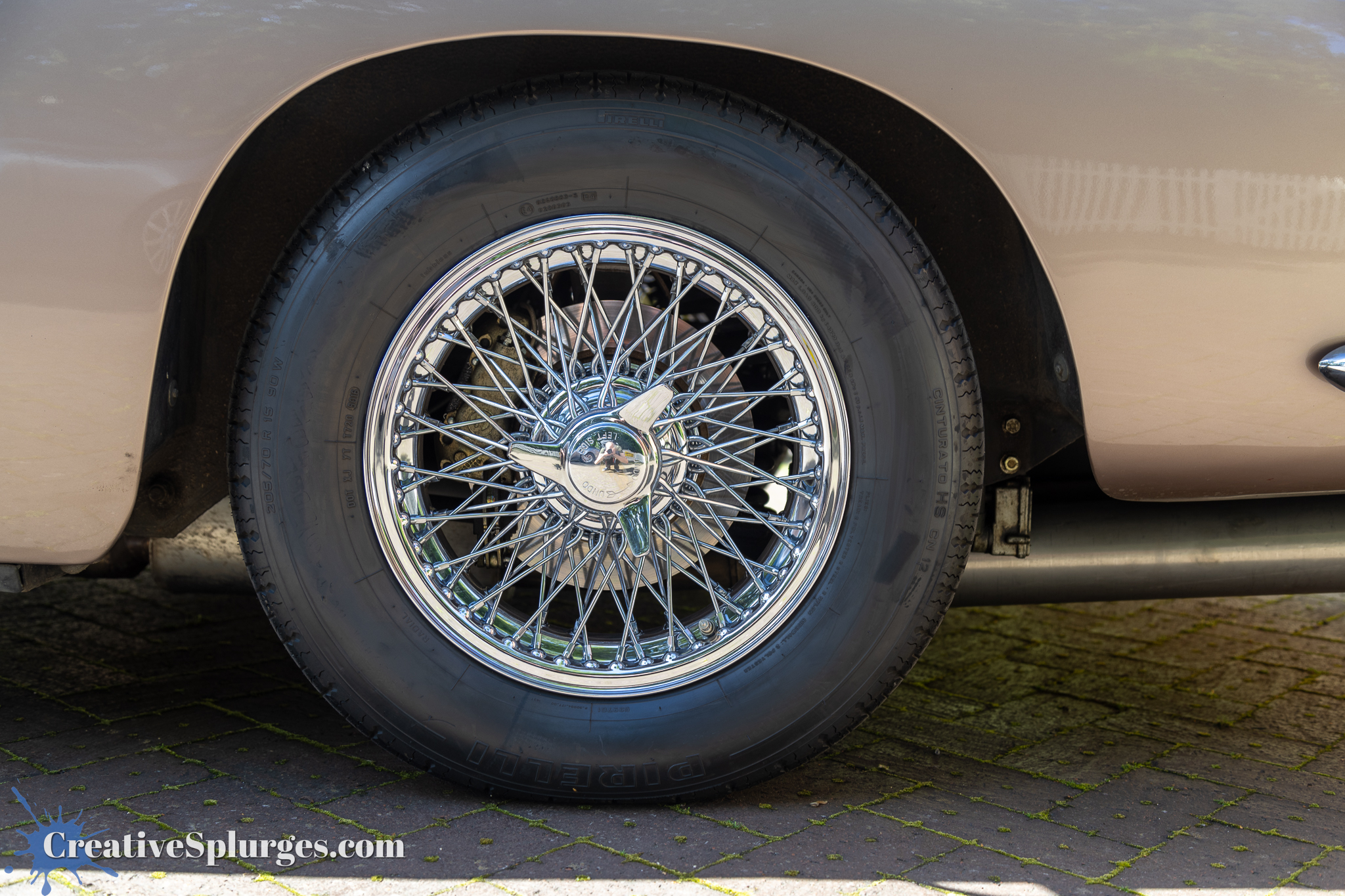 A closeup shot of the wheel of an Aston Martin Volante.
