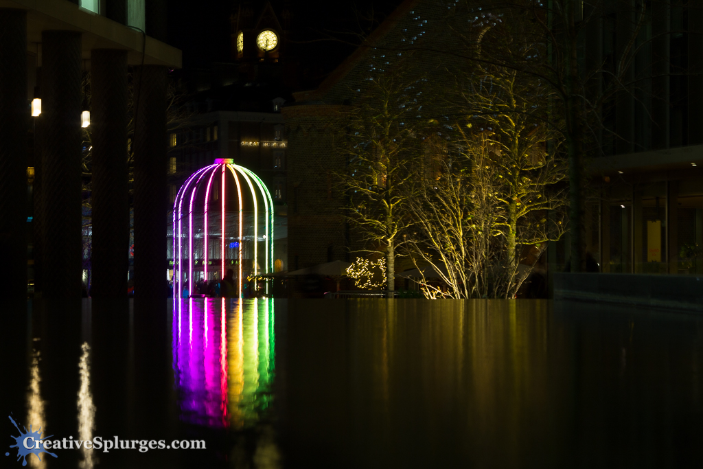 Taken during the Lumiere London event almost a decade ago, a birdcage of light reflects off a pool somewhere in London.
