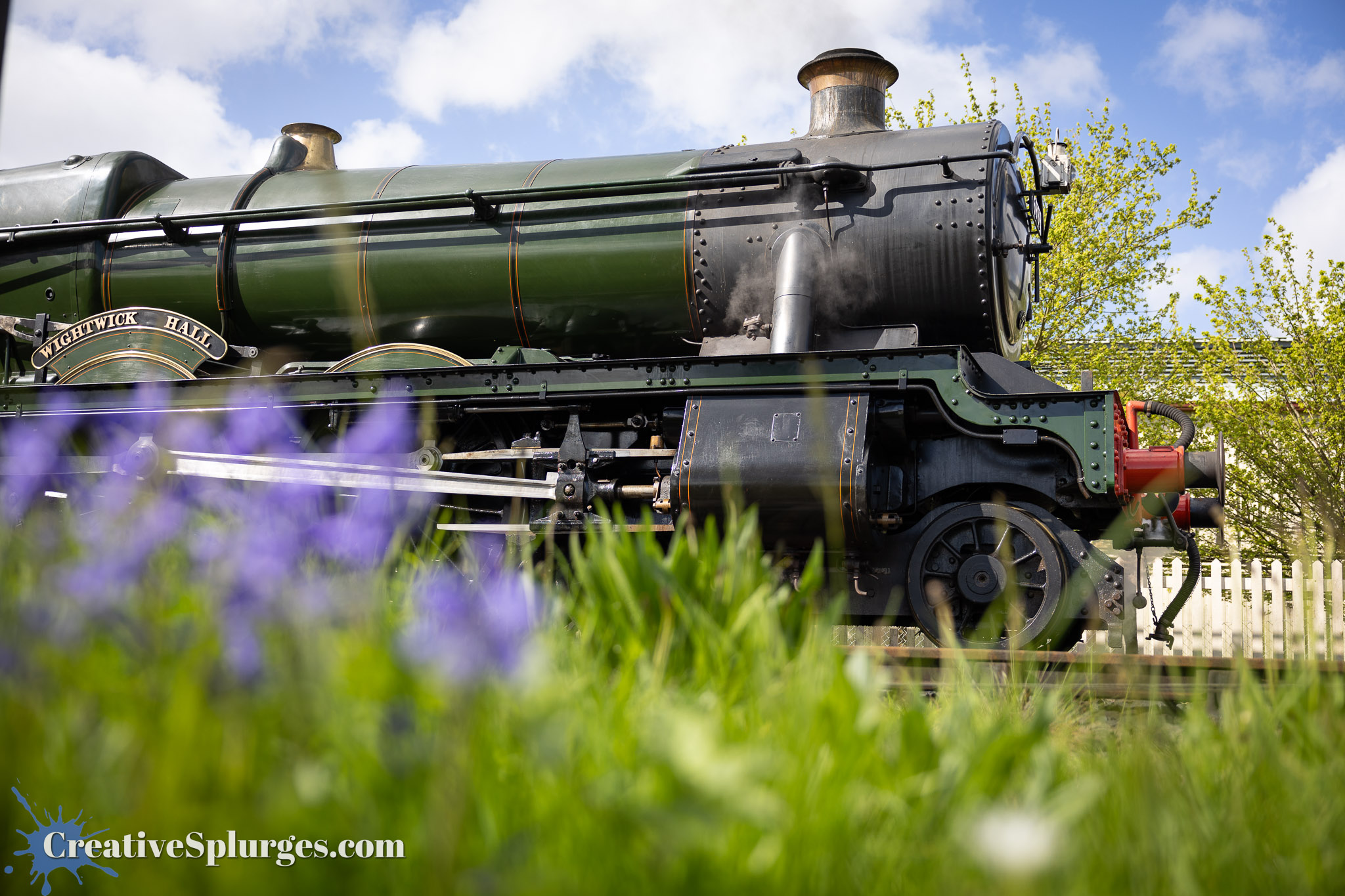 6989 Wightwick Hall sits in front of some bluebells at Sheffield Park Station on the Bluebell Railway in Sussex. This locomotive is currently painted red and appearing in the upcoming Harry Potter TV series.