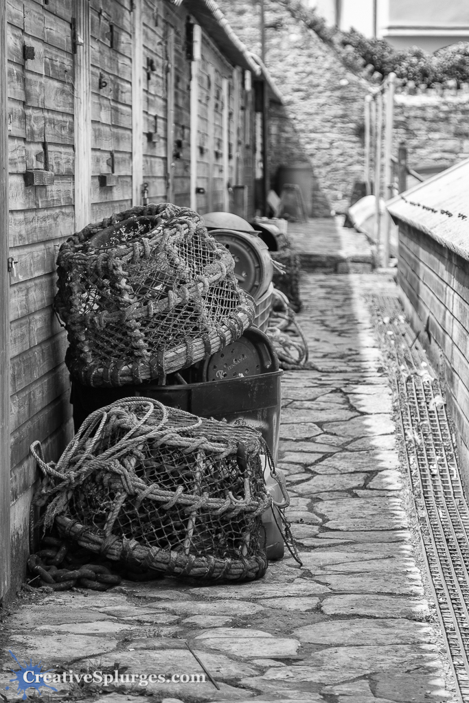 A few lobster pots in the boat park on Peveril Point, Swanage, Dorset.
